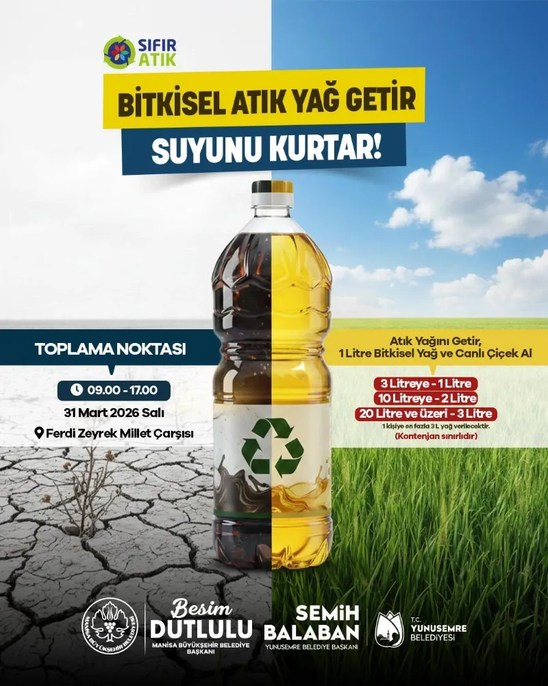(MHA) Manisa Büyükşehir Belediyesi koordinesinde, Yunusemre Belediyesi bünyesinde hayata geçirilen “Atık Yağını Getir, Suyunu Kurtar” kampanyası ile kentte önemli bir çevre hareketi başlıyor.