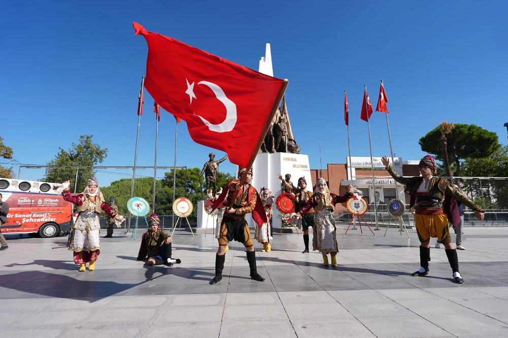 Manisa Valiliği, Garnizon Komutanlığı, Manisa Büyükşehir Belediyesi ve sivil toplum kuruluşları adına Atatürk ve Milli Egemenlik Anıtı’na çelenkler sunuldu. Ardından Türkiye Muharip Gaziler Derneği Manisa Şube Başkanı Abdullah Karakaş, günün anlam ve önemine dair bir konuşma yaptı.