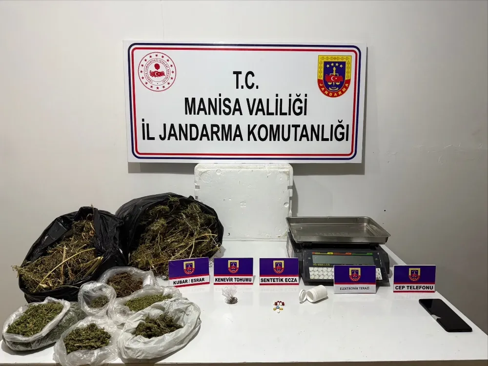 Sarıgöl İlçe Jandarma Komutanlığı ve Alaşehir JASAT unsurlarının müşterek icra ettiği aramalarda 2 bin 11 gram kubar esrar, 6 gram kenevir tohumu, 1 adet hassas elektronik terazi ve 9 adet sentetik ecza ele geçirildi. Ele geçirilen maddelere el konulurken, olayla ilgili geniş çaplı soruşturma başlatıldı.