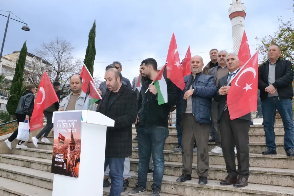 (MHA)          Manisa – Türkiye Gençlik Vakfı (TÜGVA) Manisa İl Temsilciliği, 1 Ocak’ta İstanbul Galata Köprüsü’nde yapılacak Filistin eylemine destek amacıyla Hatuniye Camii önünde basın açıklaması düzenledi. Programda katılımcılar Türk ve Filistin bayrakları taşıyarak Gazze’de süren insani krize dikkat çekti.