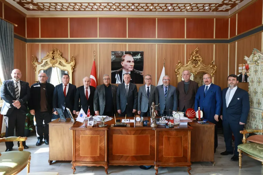 Yunusemre Belediye Başkanı Semih Balaban, Belediye Başkan Yardımcıları Ali Kuyumcu ve Haydar İzci’nin de katılımıyla Manisa Esnaf ve Sanatkârlar Odaları Birliği (MESOB) Başkanı Hasan Geriter, Pazarcılar Odası Başkanı Destan Bulgay, Manisa Esnaf ve Sanatkârlar Odası Başkanı Bahattin Akyüz, Lokantacılar Kebapçılar Tatlıcılar ve Yoğurtçular Esnaf Odası Başkanı Şafak Yıldırım, Manisa Bakkallar Odası Başkanı Saffet Taşkıncan, Manisa Seyyar Tuhafiyeci ve Manifaturacılar Esnaf Odası Başkanı Mesut Dalkara ile bir toplantı gerçekleştirdi. Yapılan toplantının ardından Belediye Başkanı Balaban ile MESOB Başkanı Geriter ortak bir açıklama yaptı.